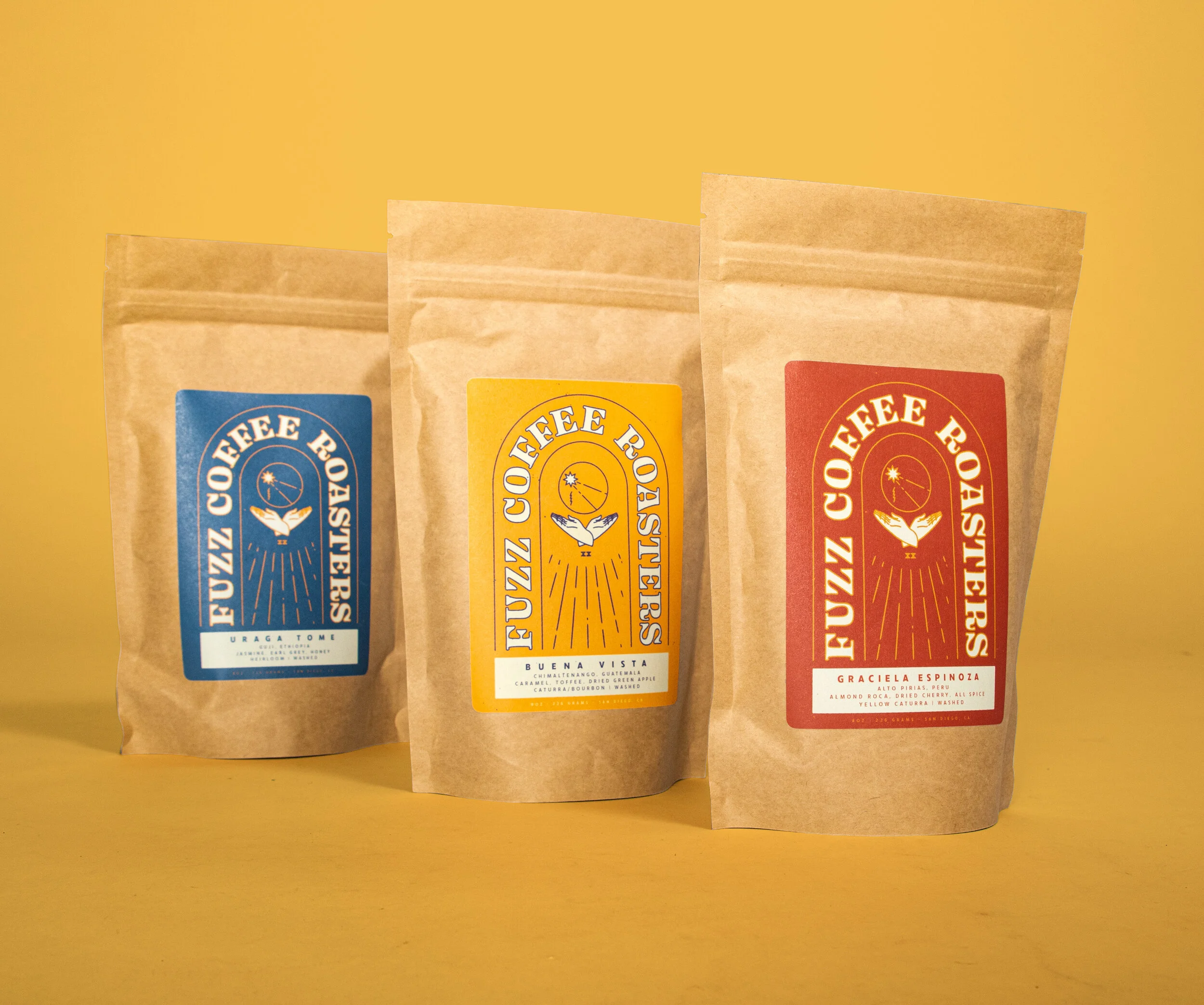 The lineup of the first three roast options from Fuzz Coffee Roasters.